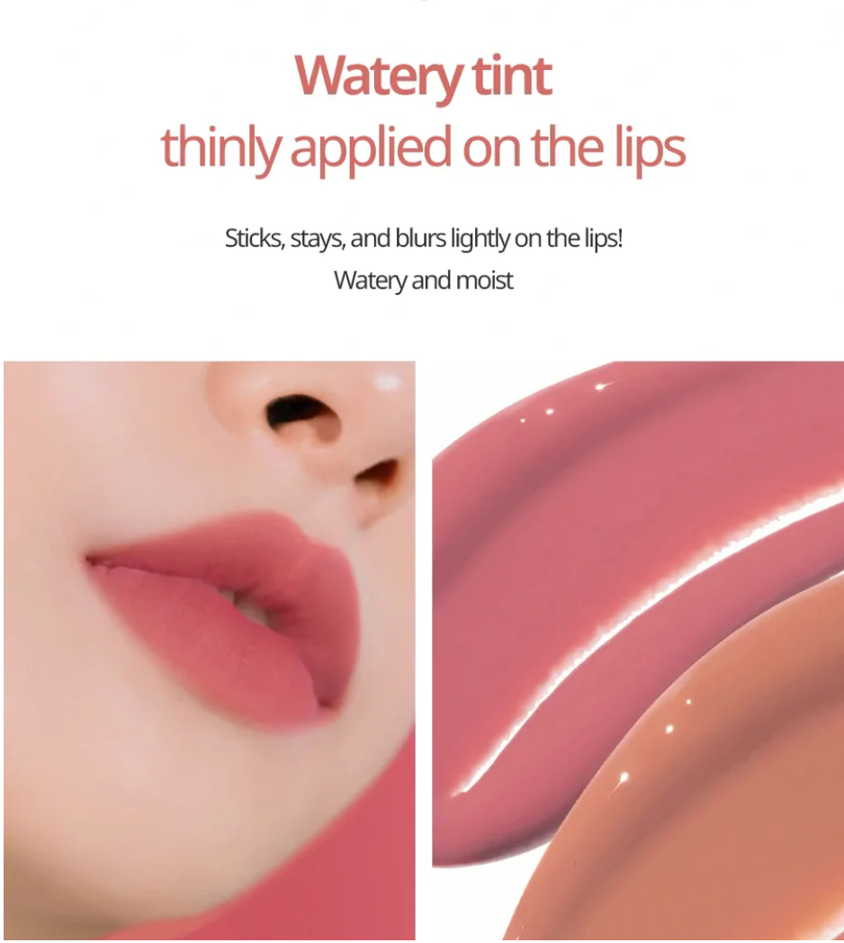 The blur tint contains a moisturizing ingredient that applies lightly like moist water tint and provides a smooth blurring finish.