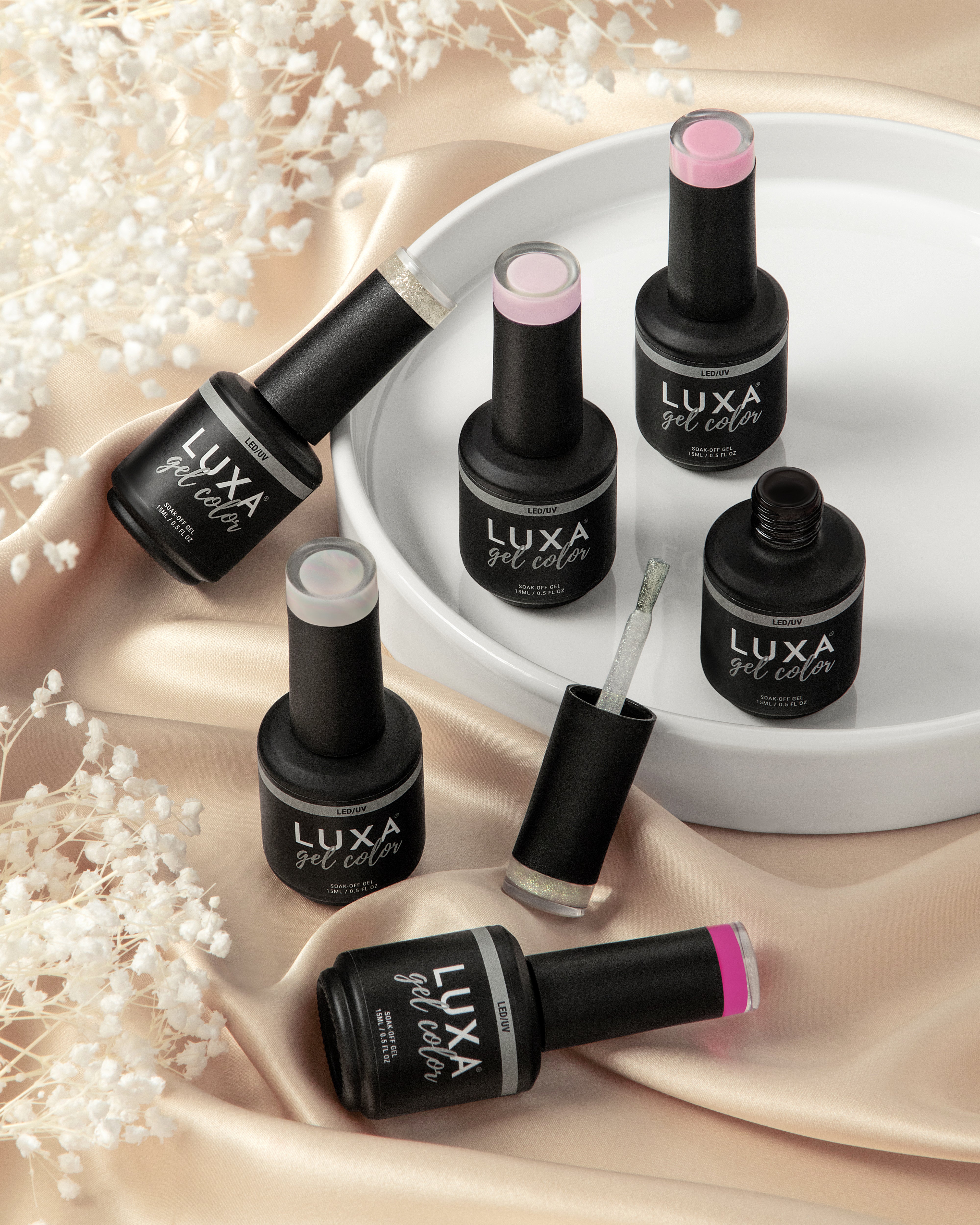 - Apply a thin layer of Luxa Gel Color over cured Luxa Base or cleansed enhancements.