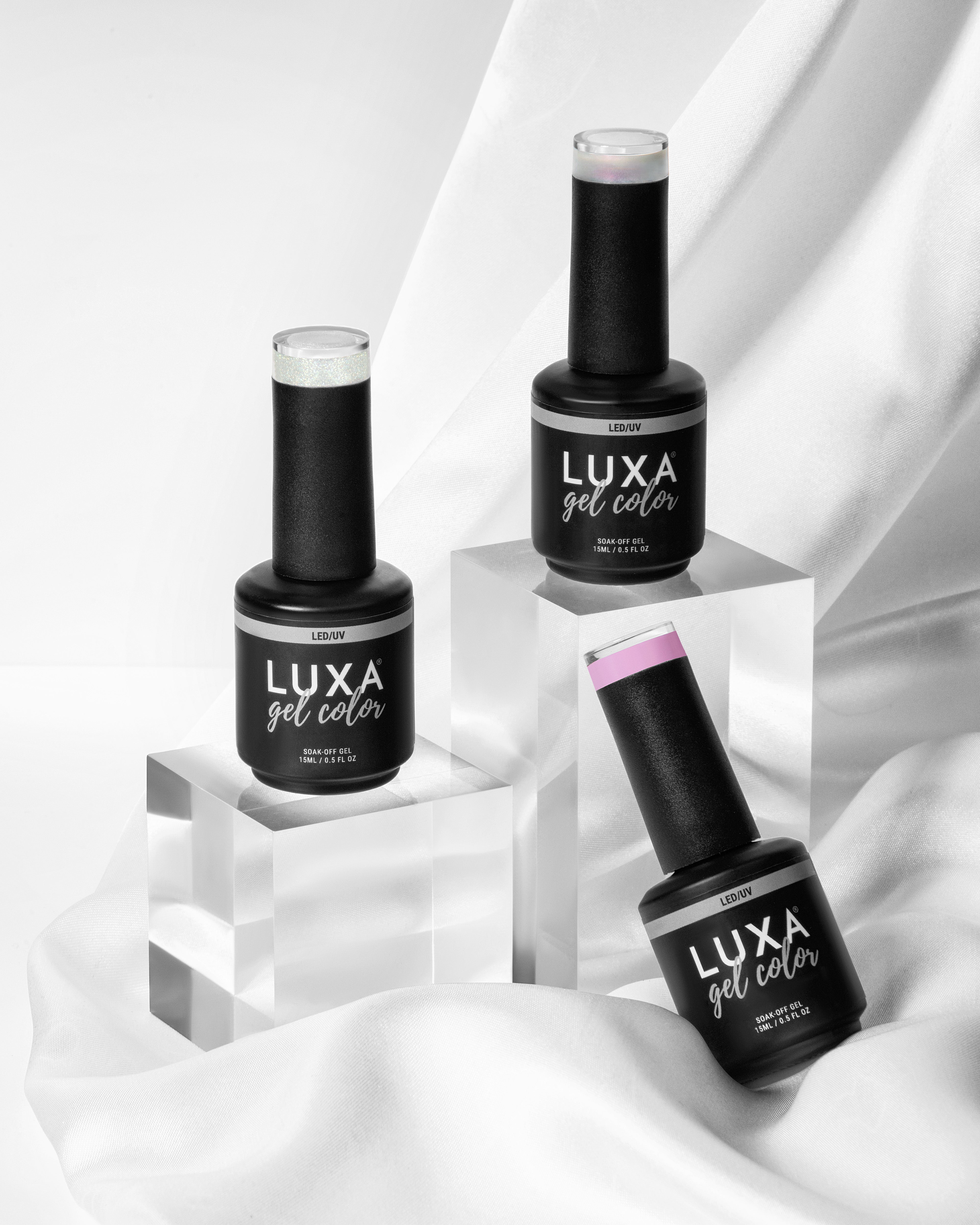 - Apply a thin layer of Luxa Gel Color over cured Luxa Base or cleansed enhancements.