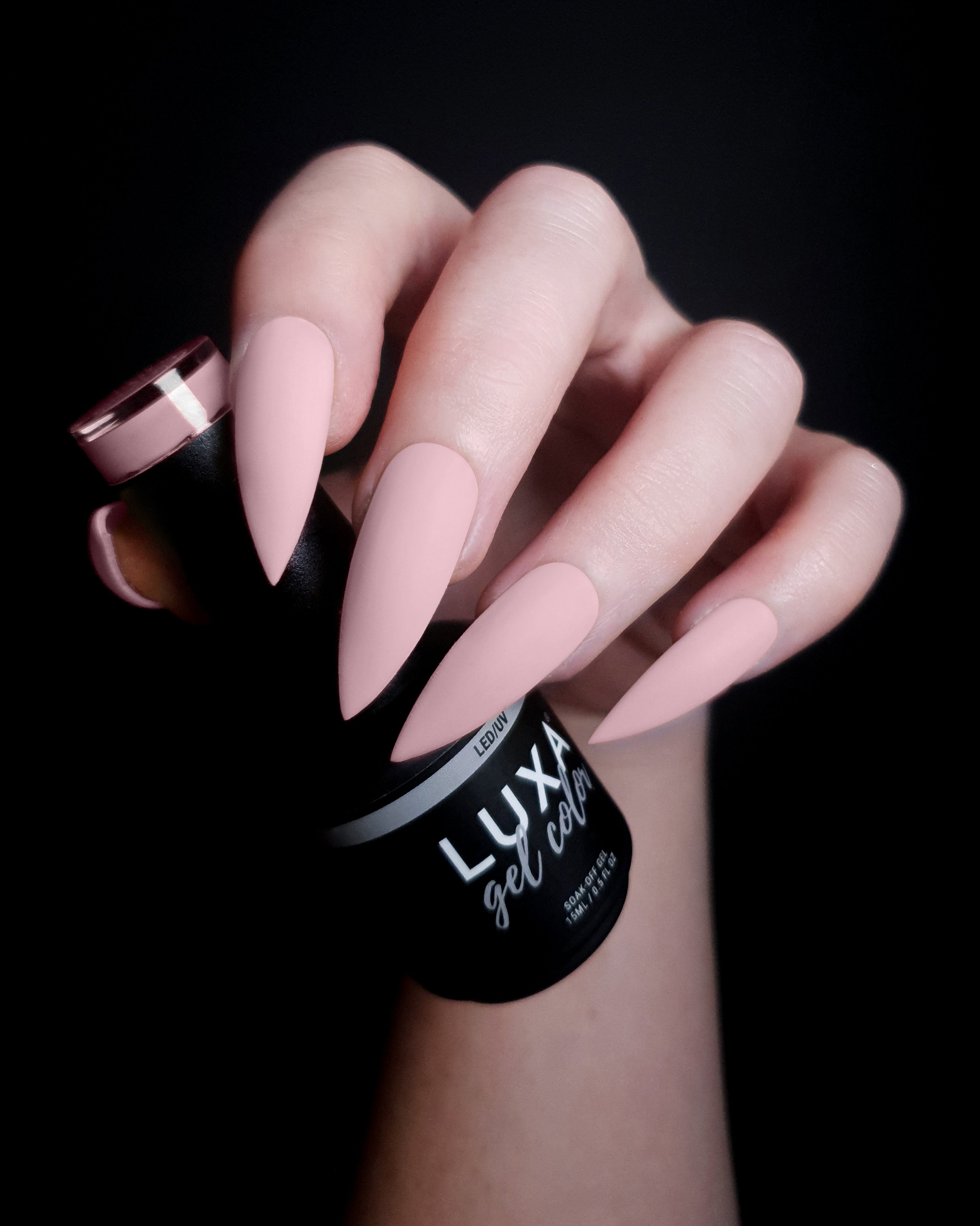 - Apply a thin layer of Luxa Gel Color over cured Luxa Base or cleansed enhancements.