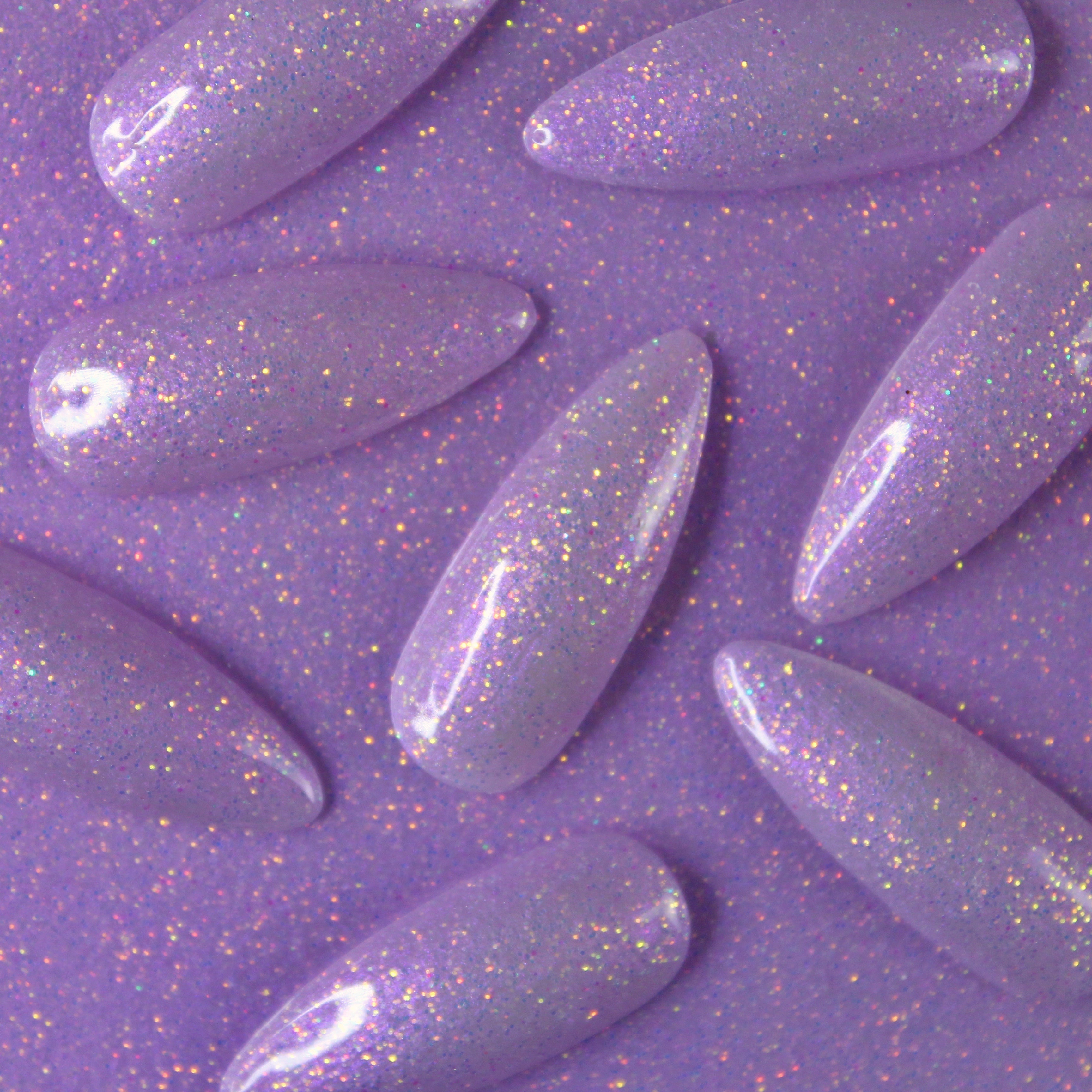 Part of the Mystic Effects Collection; shimmery, glittery, opalescent gel polishes that are beautiful by themselves or over another color for a mystical effect. Note that the Mystic Effects gels are thicker and for good reason; they definitely pack a punch!