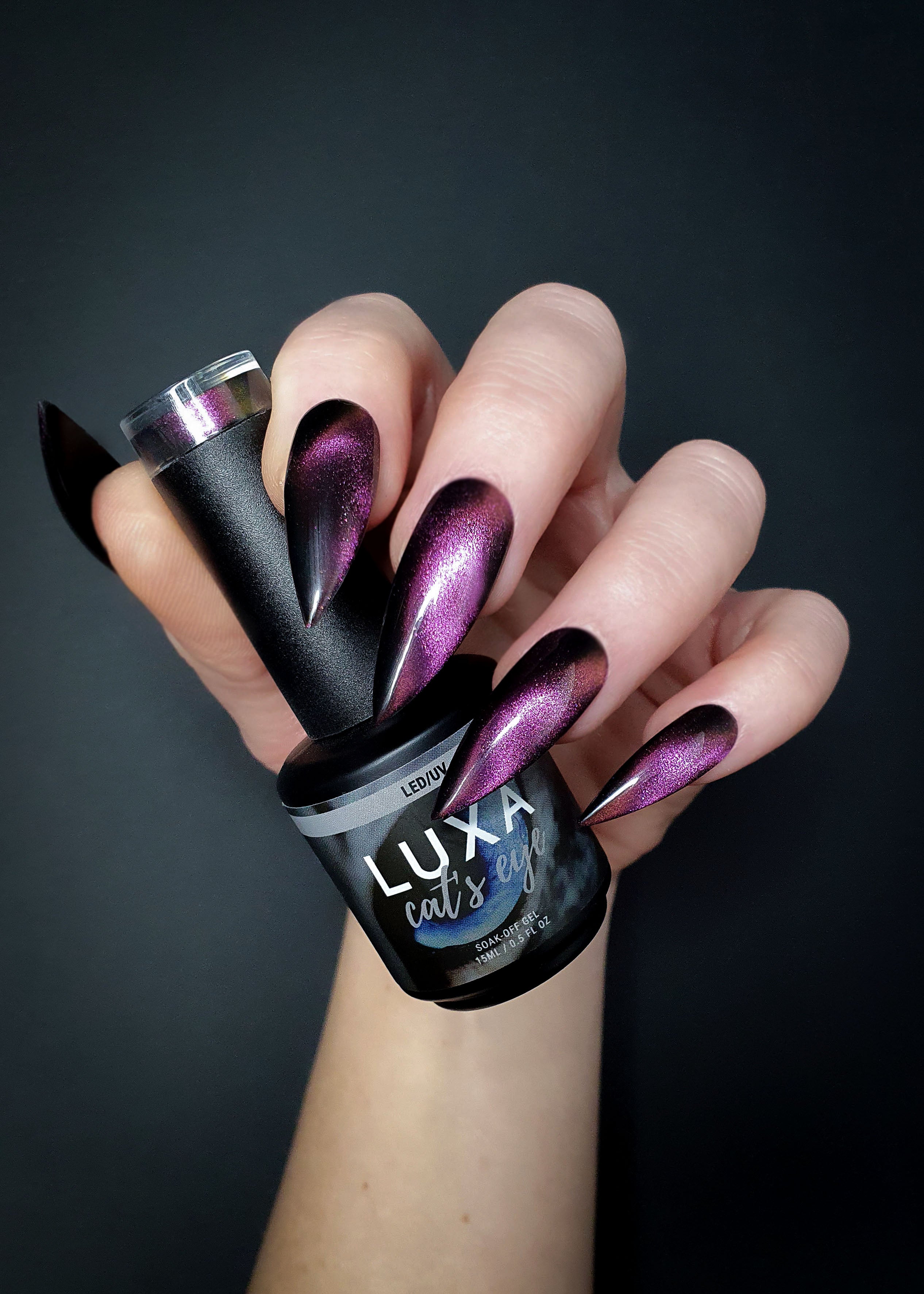 LUXA Cat's Eye Gel will give any mani a stunning, eye catching effect! For the most vibrant look, use over BLACKOUT with the Magic Wand for a cat's eye effect.