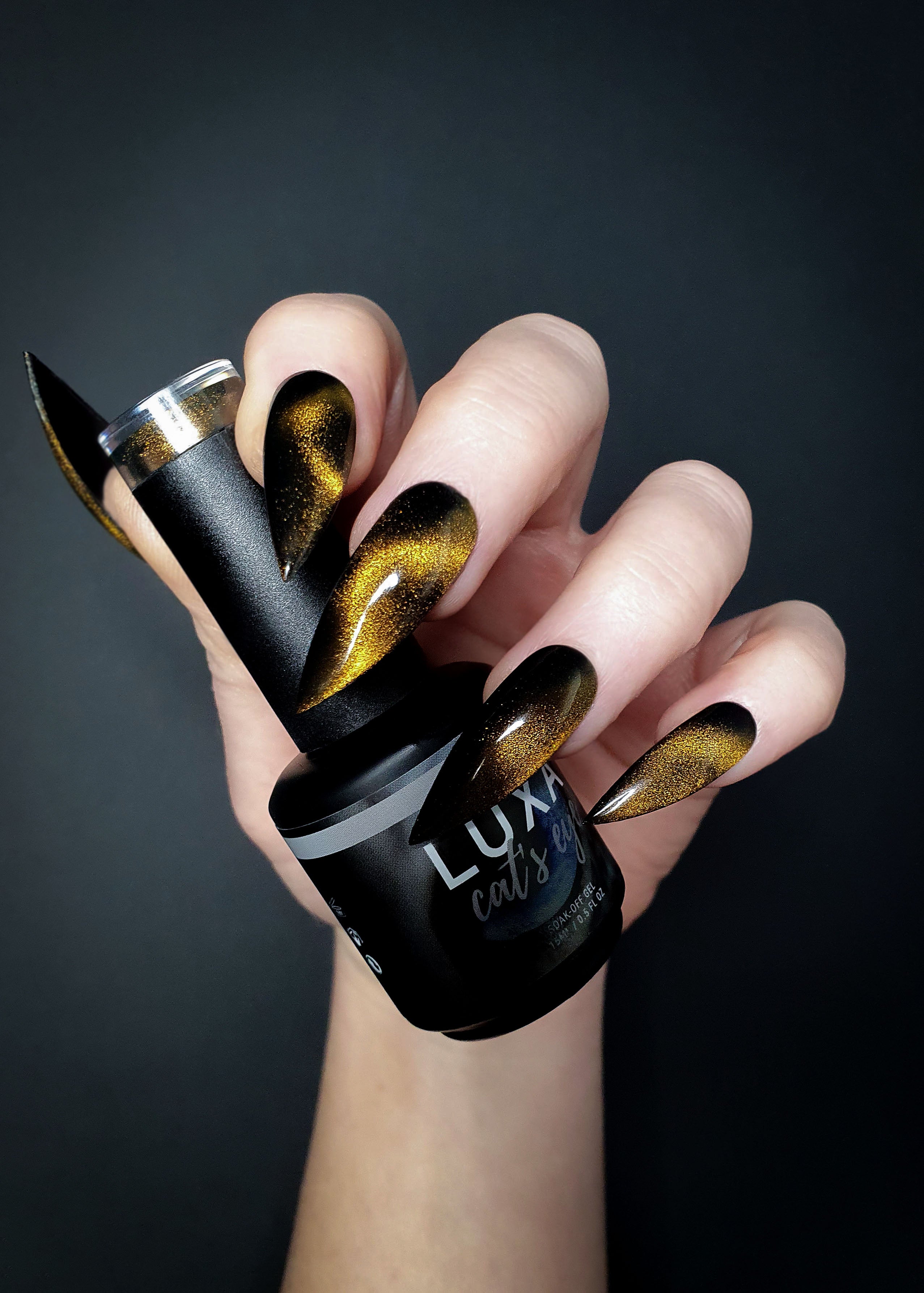 LUXA Cat's Eye Gel will give any mani a stunning, eye catching effect! For the most vibrant look, use over BLACKOUT with the Magic Wand for a cat's eye effect.