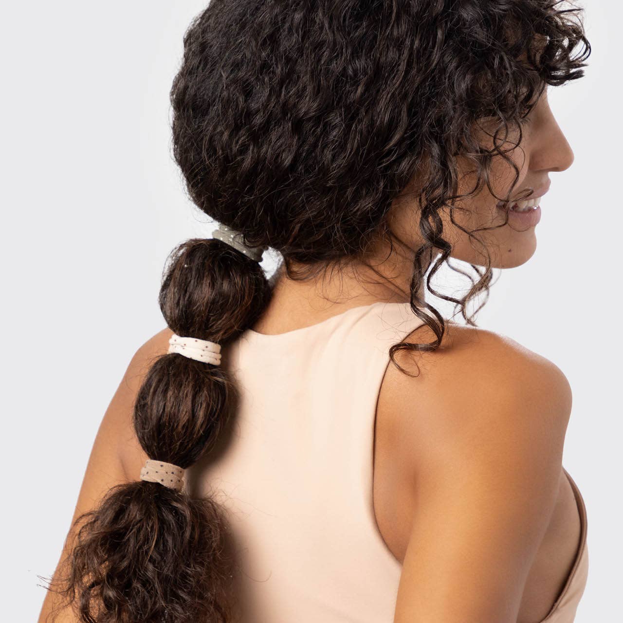 Add some playful polka dots to your ponytails, braids, and buns with Kitsch Eco-Friendly Nylon Elastics. These soft and stretchy elastics are an everyday must-have, crafted to give you a tight, all-day hold while effortlessly gliding through your hair without tugging, snagging, or creasing. Plus, they’re made from 100% recycled nylon, meaning they’re kind to your hair and the environment! Comes in a pack of 12, featuring three chic, easy-to-match neutrals with subtle polka dots.